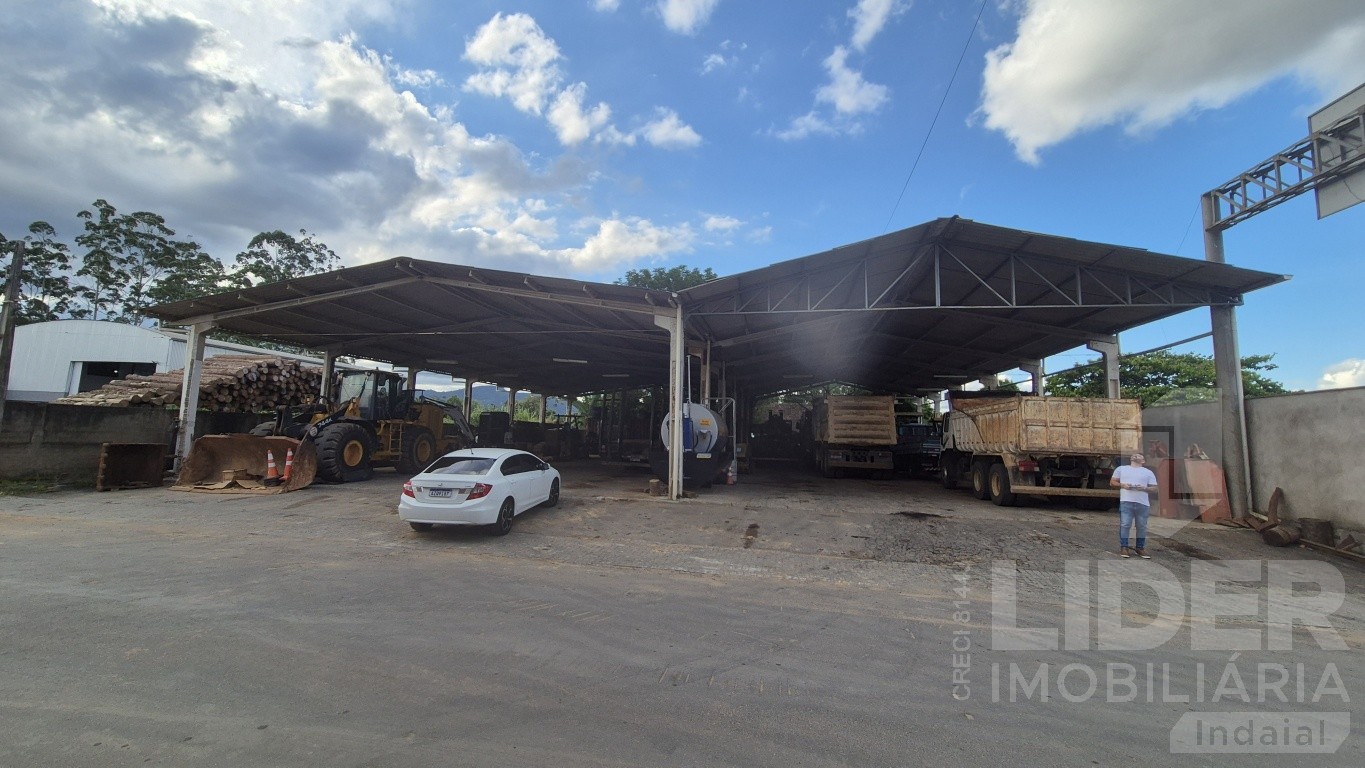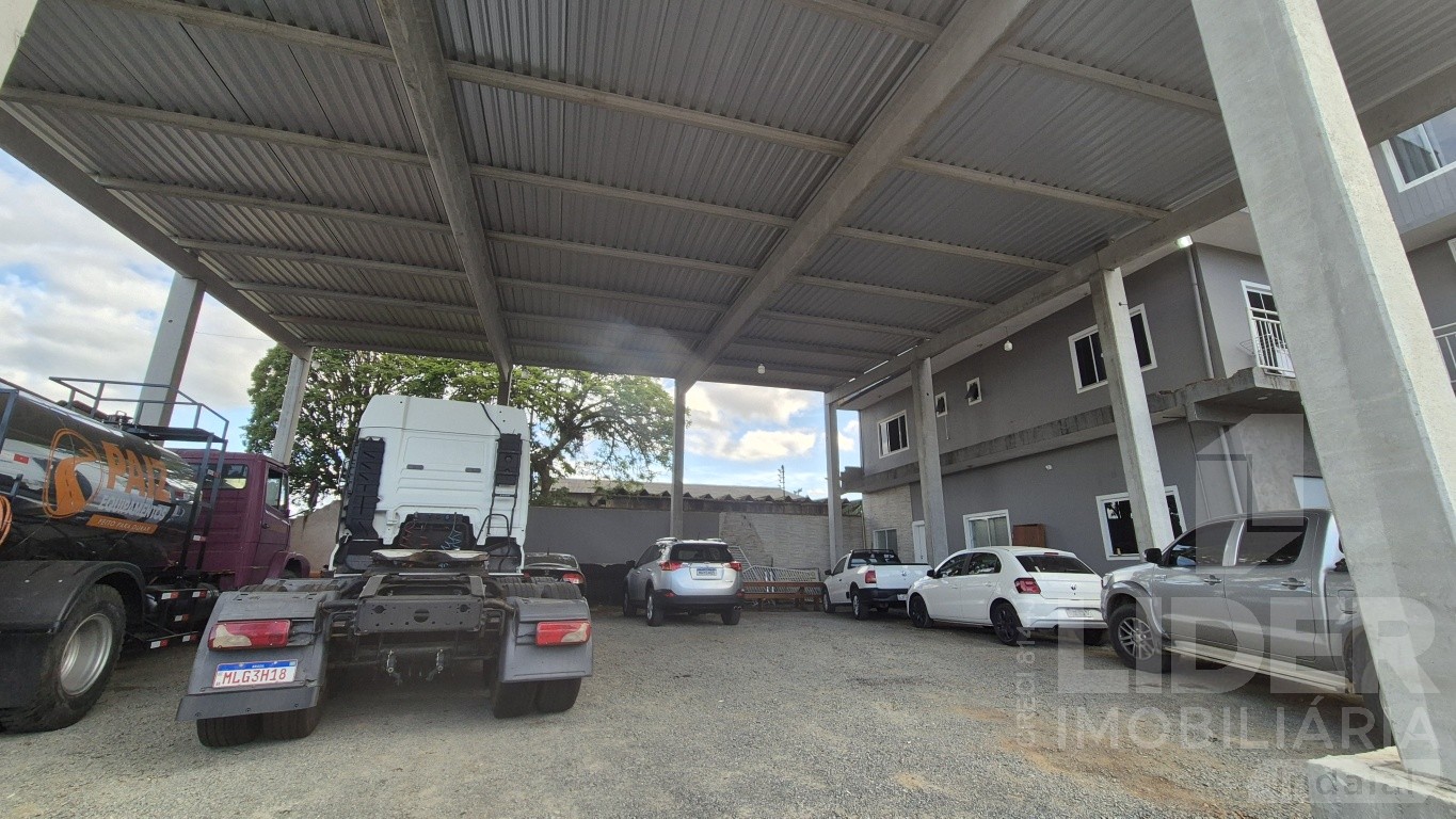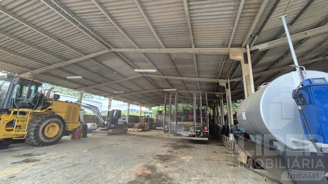 *Galpão frente com terreno de 900m² e área construída de 800m², aberto nas laterais, com pé direito alto de 5 metros, acabamento com piso bruto no chão.