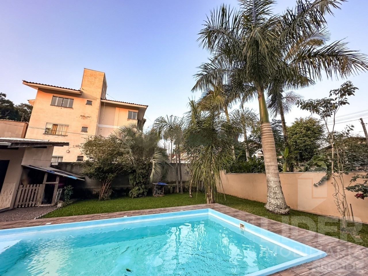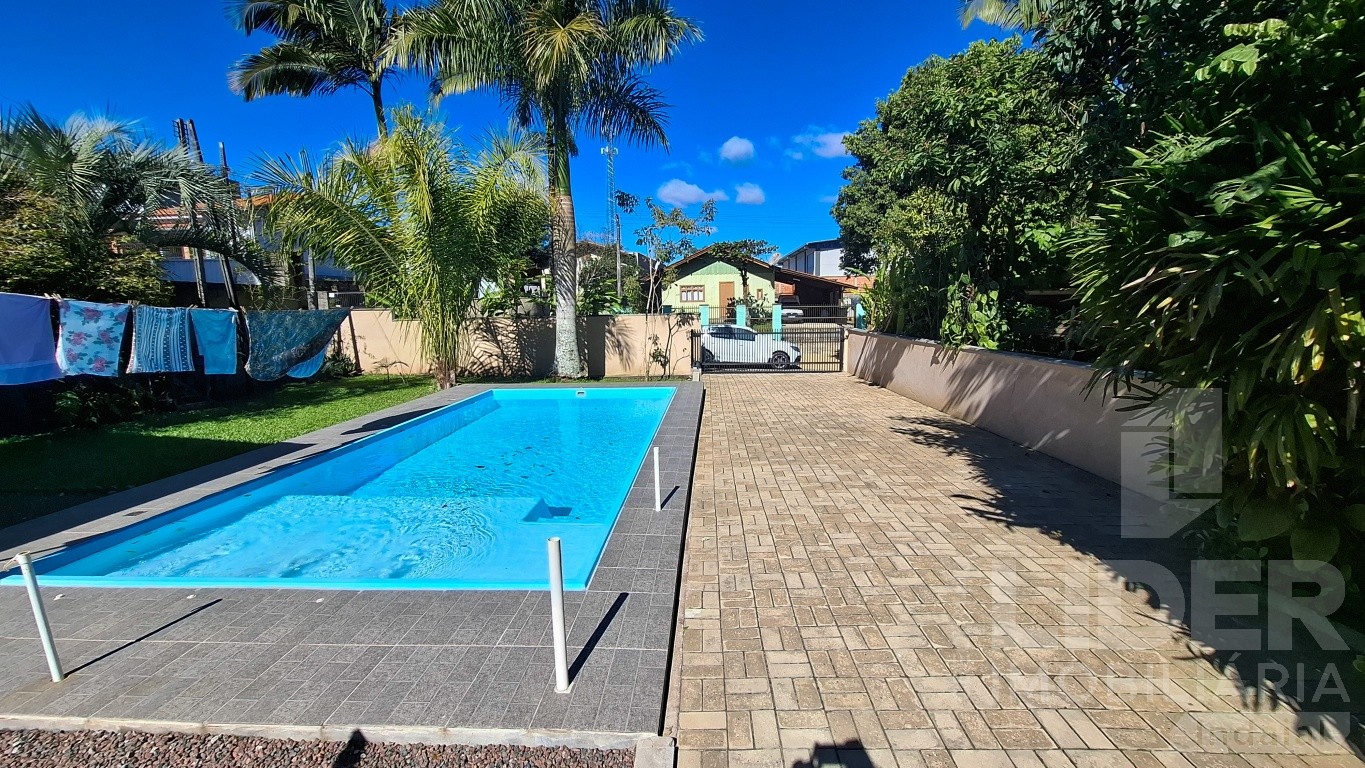 Casa com 250,00m² de área construída edificada em um terreno de 570,78m² contendo 3 dormitórios, mas podendo fazer mais 1 dormitório ou adaptar com mais uma suíte e closet, sala de jantar/estar, cozinha ampla, 3 banheiros sociais, área de serviços, 1 varanda, área de festa com churrasqueira, piscina e com 2 vagas de garagem coberta.