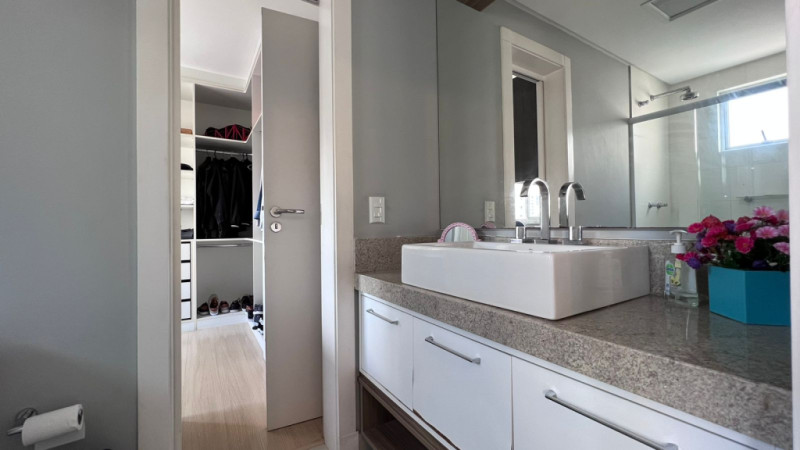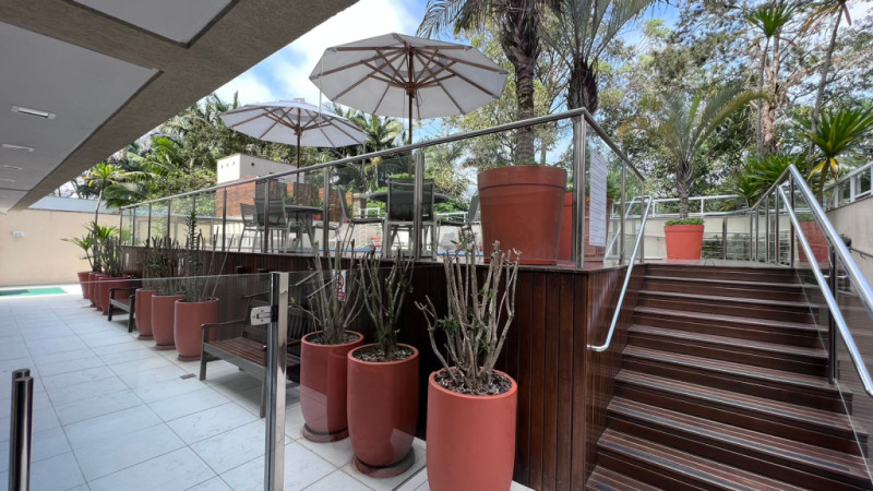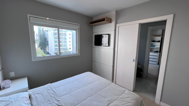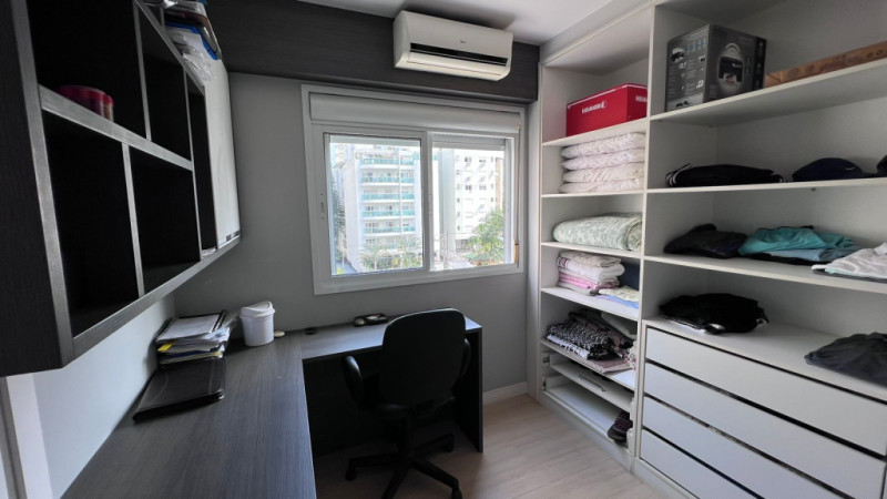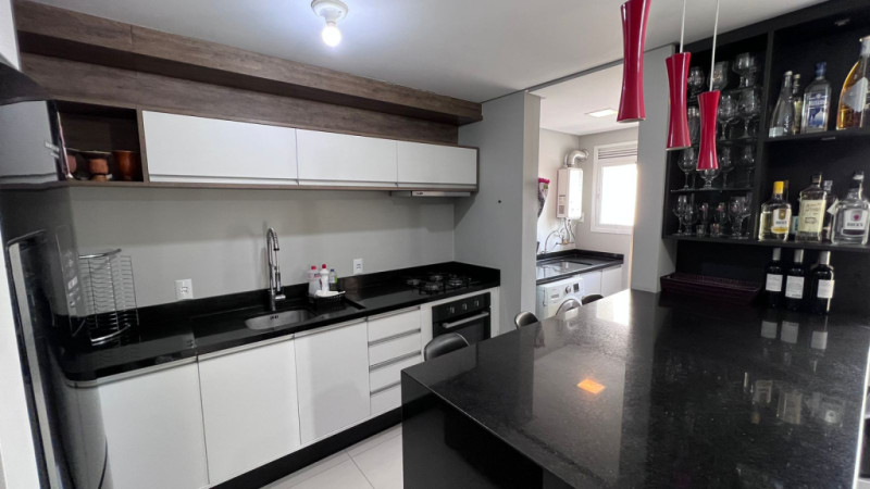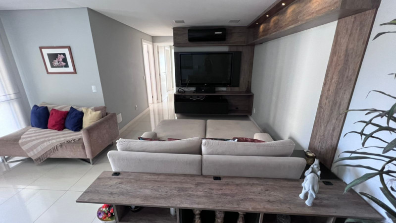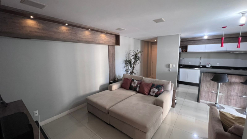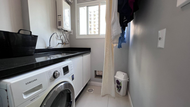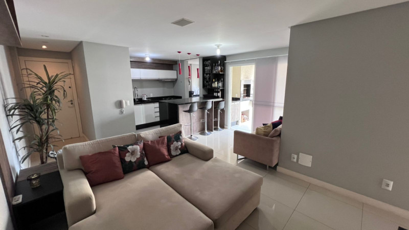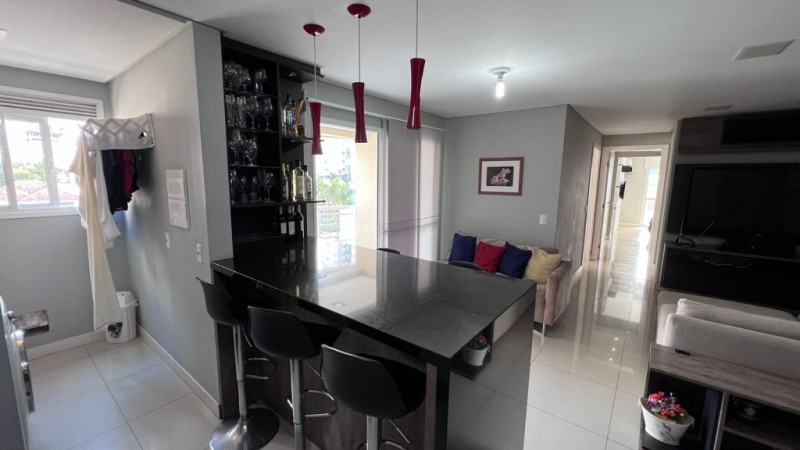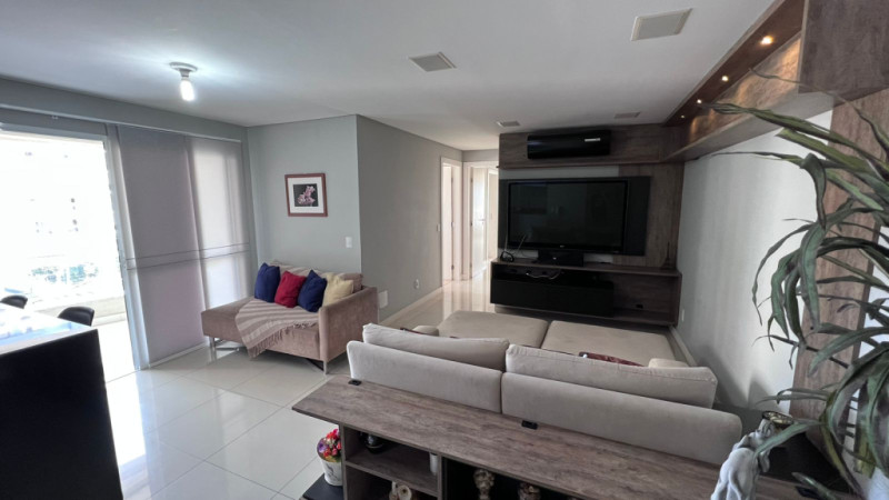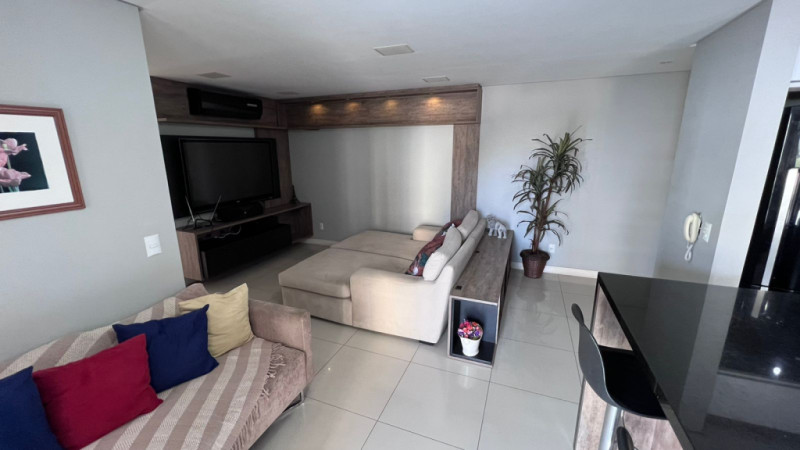 Com aprox. 125,00m² de área privativa, totalmente mobiliado com móveis e eletros, conta com sala e cozinha integradas, área de serviços, sacada com churrasqueira, lavabo, 01 suíte com sacada, 02 demi-suítes aonde atualmente uma está sendo usada como escritório e closet, 02 vagas de garagem. Acabamentos em piso porcelanato, rebaixa em gesso, papel de parede, ar-condicionado em todos os cômodos.