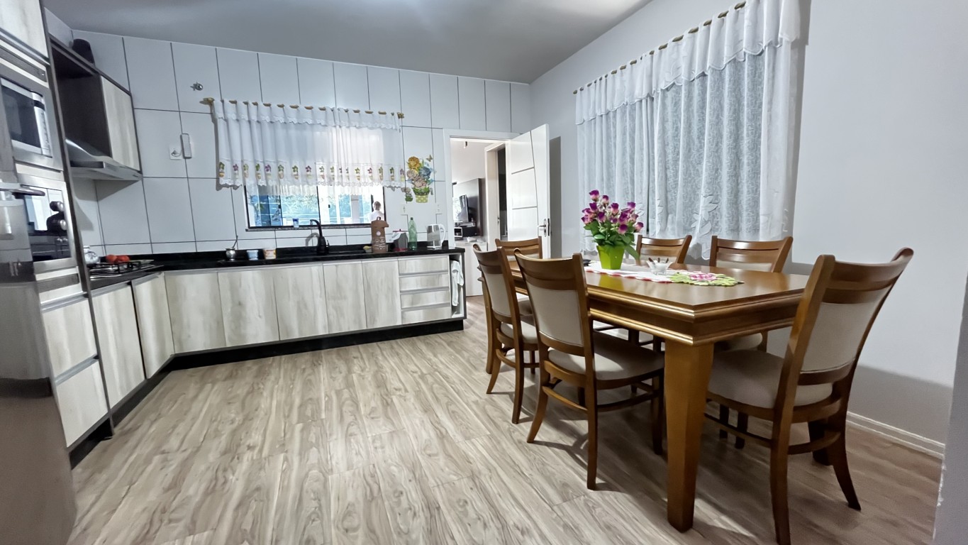 Esse lindo imóvel conta com uma ampla metragem quadrada em construção, e esta divido em dois imóveis sendo o imóvel da parte superior com 3 quartos sendo 1 deles uma suíte, banheiro social, sala de estar e jantar, cozinha com móveis sob medidas e uma ampla área de festas, todos os cômodos do imóvel são espaçosos com uma metragem maior que o comum.