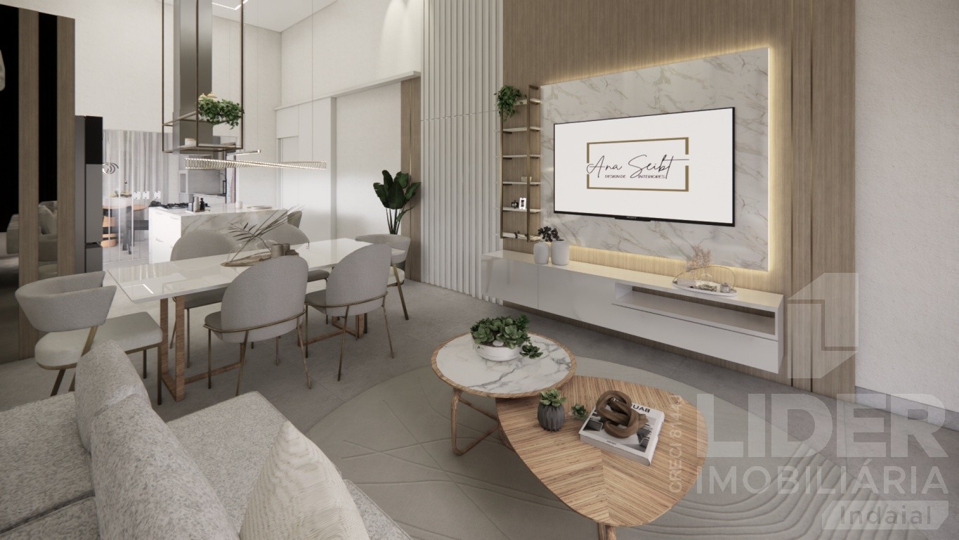 Implantada em um amplo terreno de 552m², a casa dispõe de 181,68m² construídos, com planta inteligente e ambientes amplos. O living integrado com pé-direito alto valoriza a iluminação natural e proporciona um ambiente elegante.