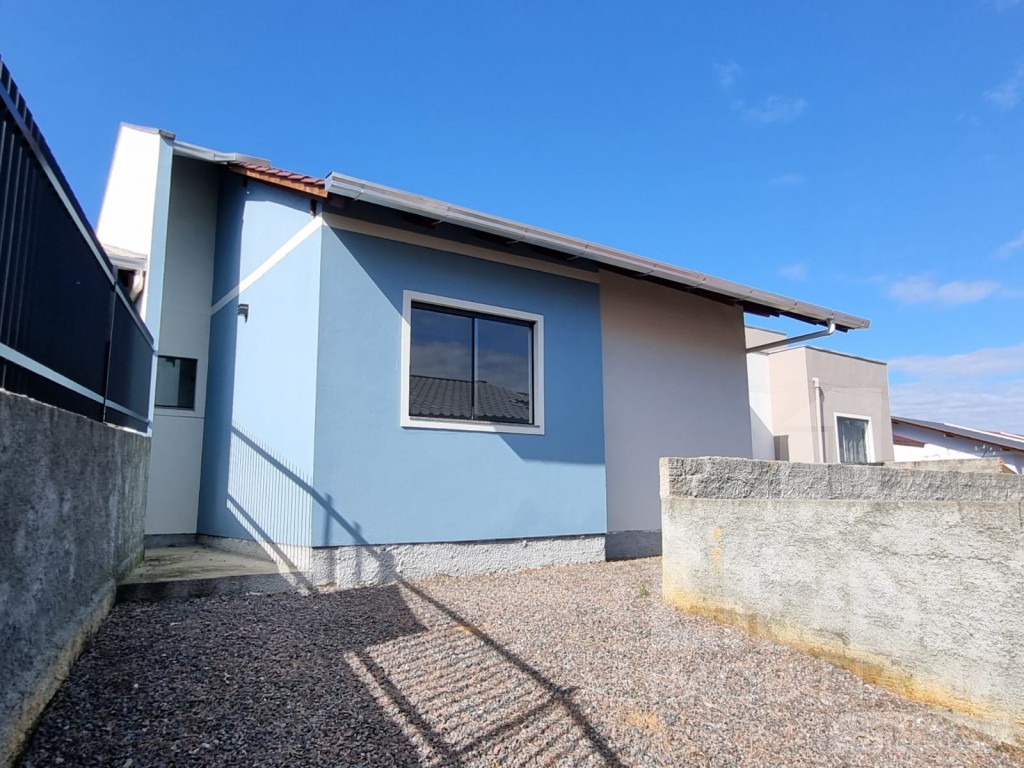 Casa nova em terreno de 187,36m² com 86,10m² de área construída, possui sala e cozinha integrados, 02 dormitórios, banheiro social, área de serviço, garagem para 02 veículos e churrasqueira.