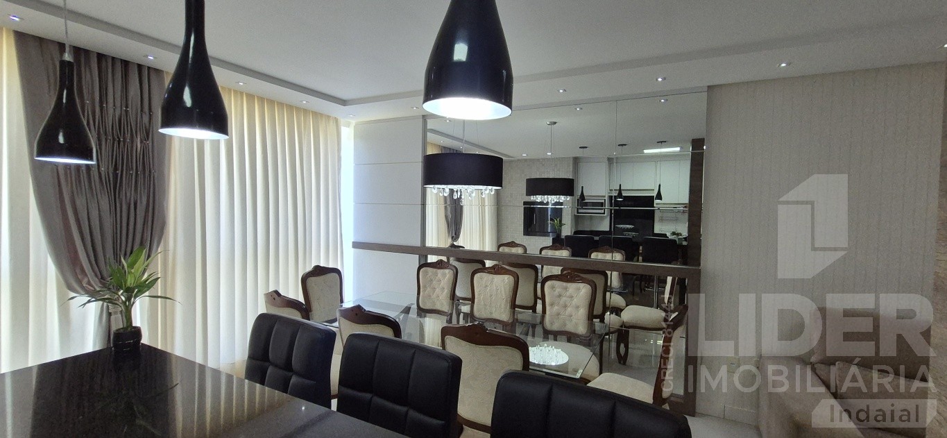 Apartamento semi mobiliado com área total de 144,66m² e 118,38m² privativos contendo 3 dormitórios sendo 3 suítes, armários embutidos, banheiros totalmente mobiliado, living com sala de jantar e estar com 2 vagas de garagem coberta.