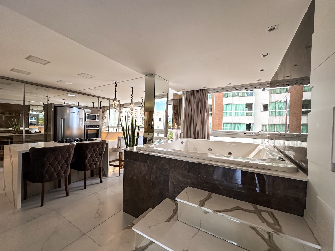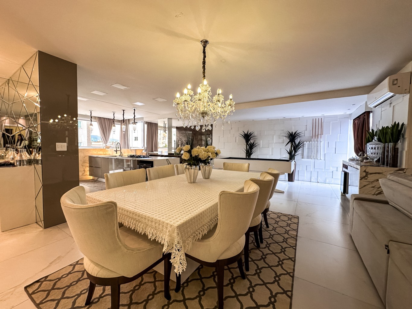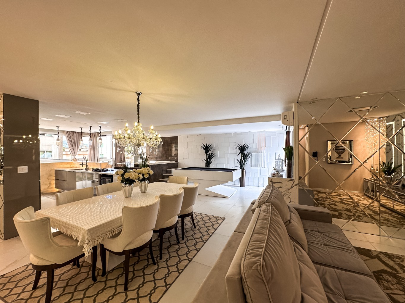 Apartamento finamente mobiliado e decorado com 147,89m² de área privativa com hall de entrada mobiliado e decorado, contendo 3 suítes amplas e elegantes, sala de estar espaçosa integrada a sala de tv, cozinha moderna e funcional toda completa e mobiliada, lavabo, área de serviços espaçosa e completa, churrasqueira privativa e além disso, conta com um espaço descontraído para jogos com mesa de sinuca e ofurô com duas vagas de garagem gaveta.