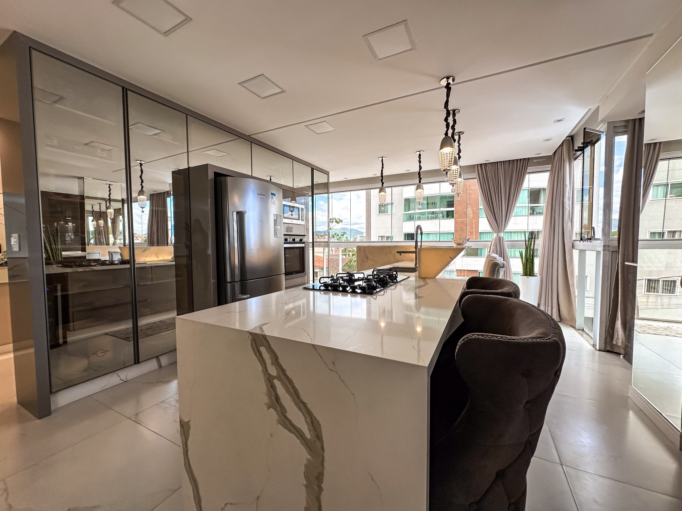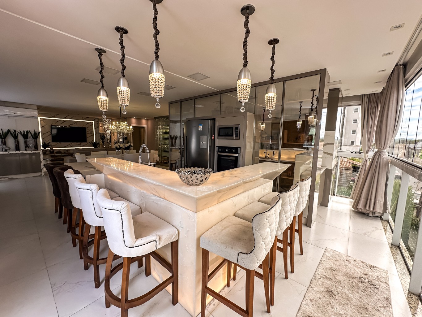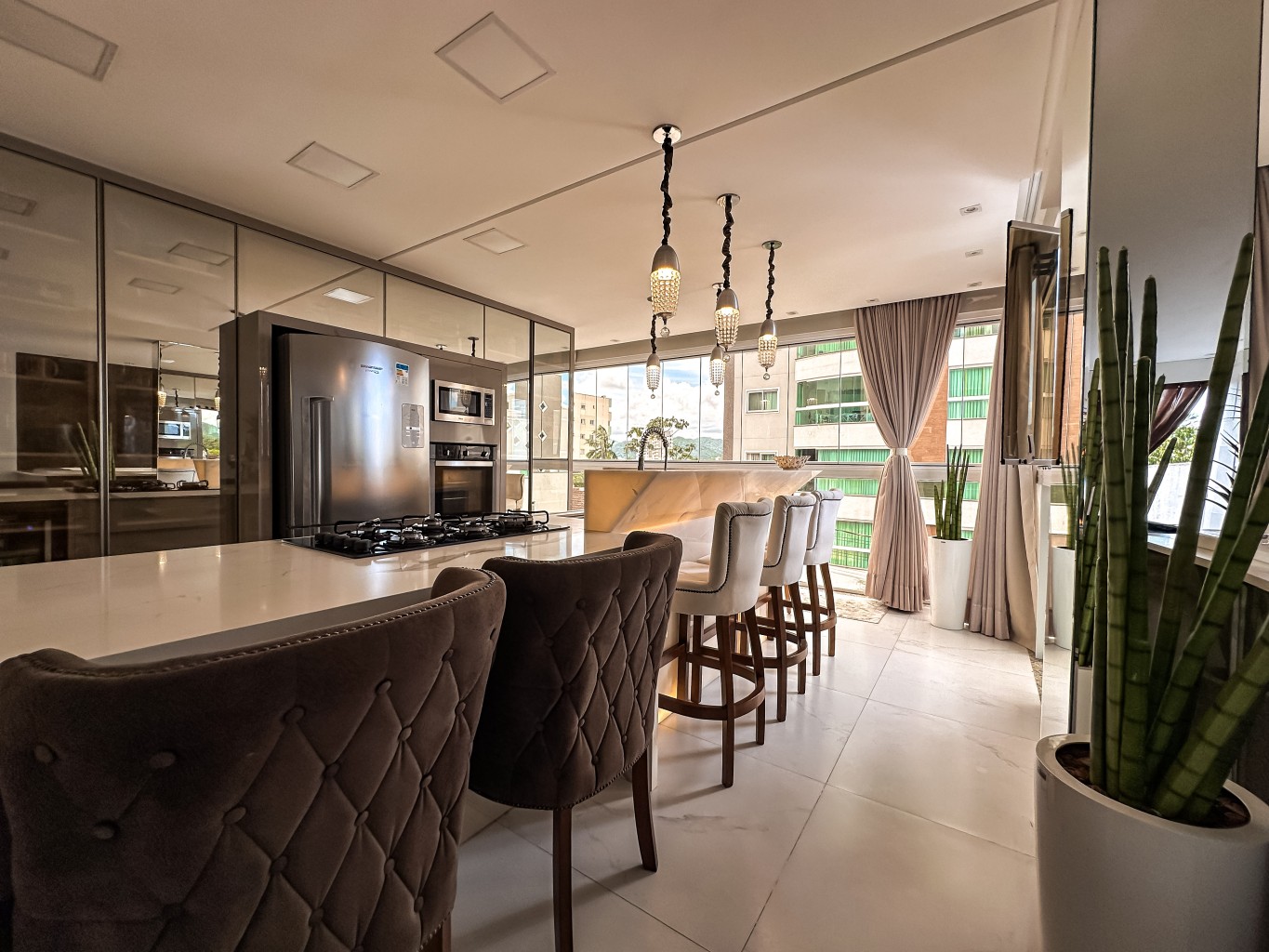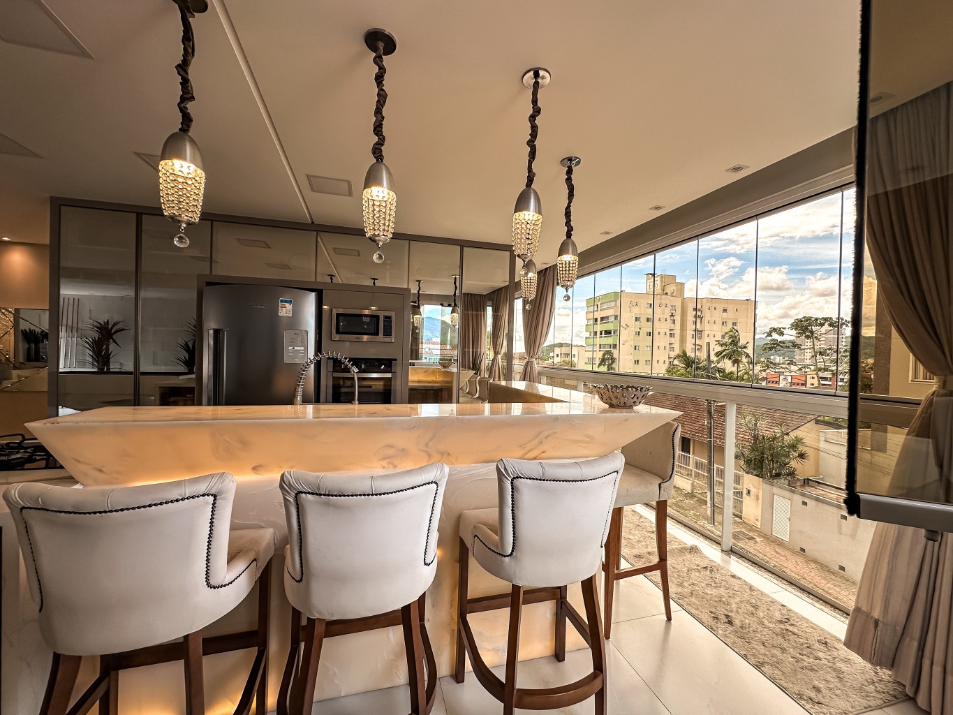 Apartamento finamente mobiliado e decorado com 147,89m² de área privativa com hall de entrada mobiliado e decorado, contendo 3 suítes amplas e elegantes, sala de estar espaçosa integrada a sala de tv, cozinha moderna e funcional toda completa e mobiliada, lavabo, área de serviços espaçosa e completa, churrasqueira privativa e além disso, conta com um espaço descontraído para jogos com mesa de sinuca e ofurô com duas vagas de garagem gaveta.