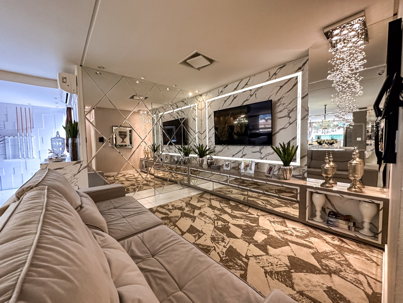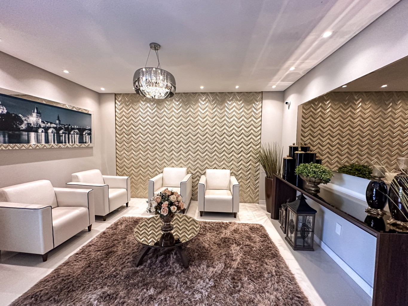 Hall de entrada mobiliado e decorado;