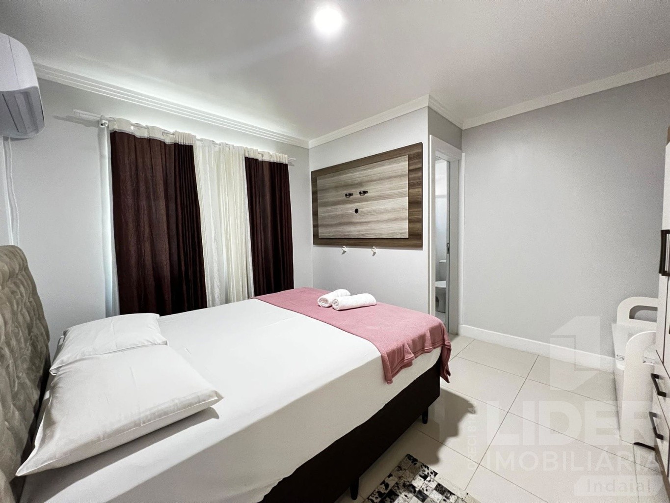 Residencial Ilha Bela 100% mobiliado com 81,62m² de área privativa contendo 2 dormitórios sendo 1 suíte, sala de jantar e estar, cozinha com moveis sob medida, 1 banheiro social, sacada, churrasqueira e 1 vaga de garagem a 600m do mar.