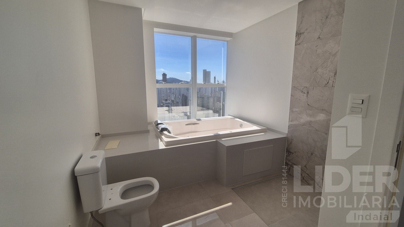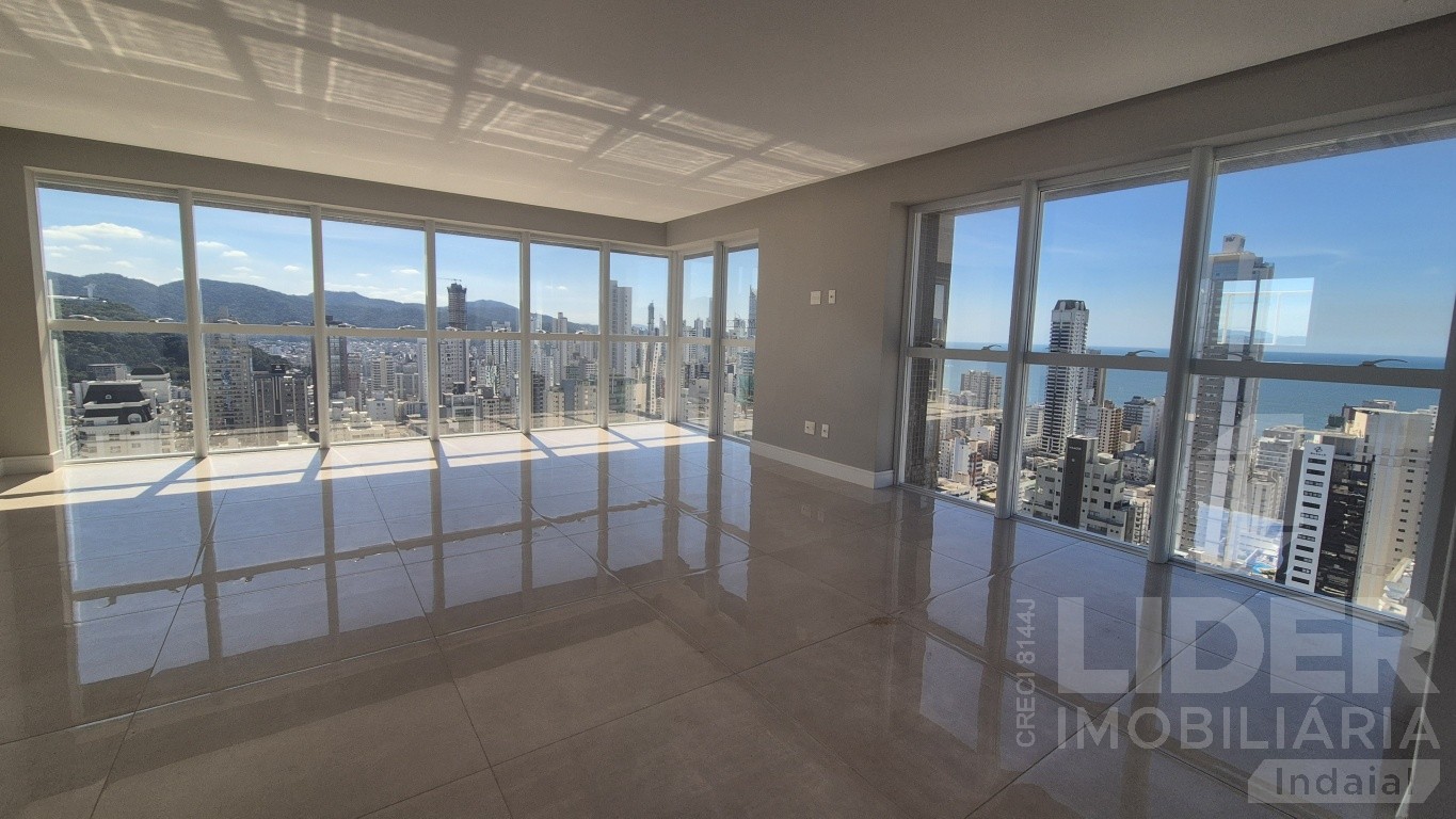No topo, a piscina privativa com deck proporciona lazer com vista privilegiada para o Cristo Redentor e as montanhas. O apartamento está vazio, pronto para personalização, e possui fechadura digital e 6 vagas de garagem. Uma cobertura imponente para quem busca exclusividade em Balneário Camboriú.